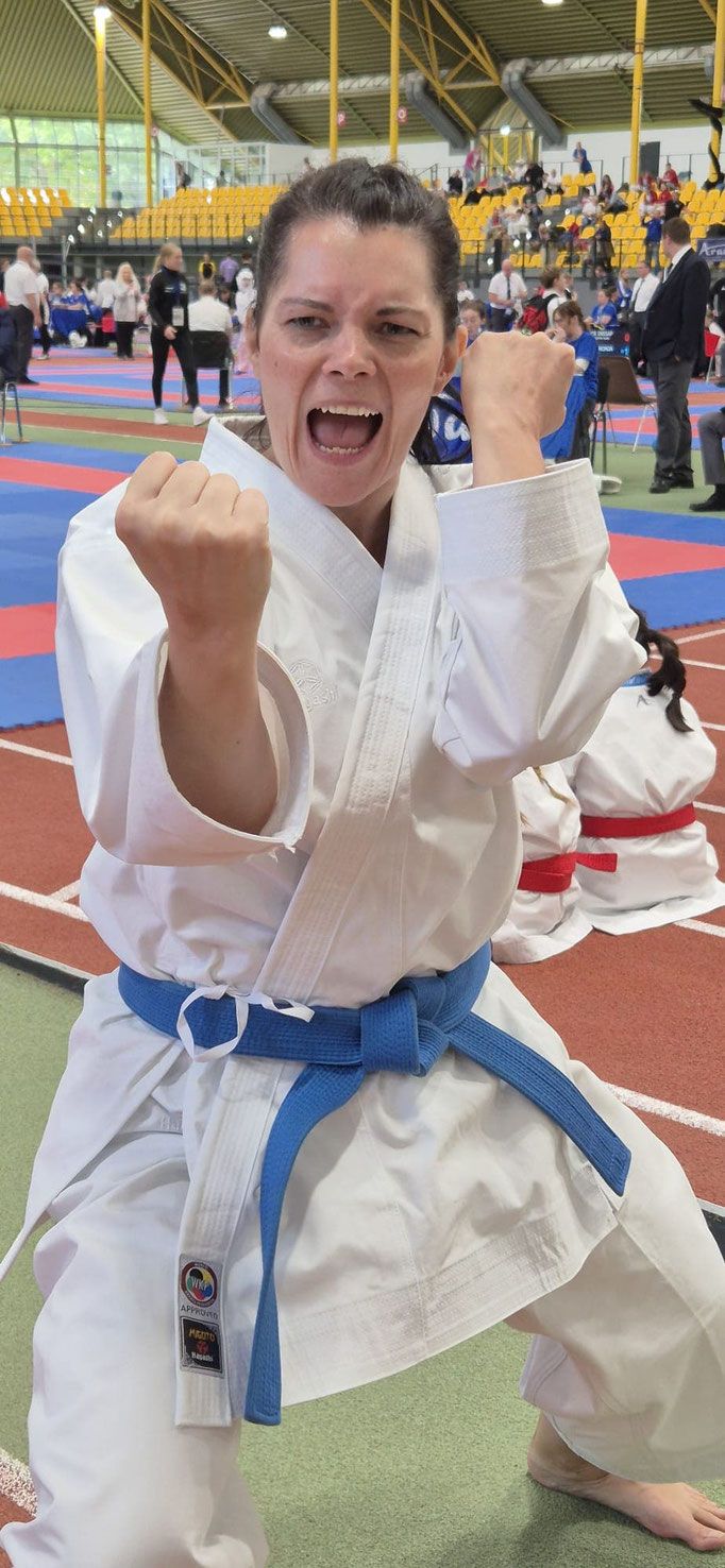 Der Höhepunkt des Tages war der großartige Erfolg von Kathrin Schultheis, die in der Kategorie Kata Einzel Damen Ü35 die Bronzemedaille gewann!